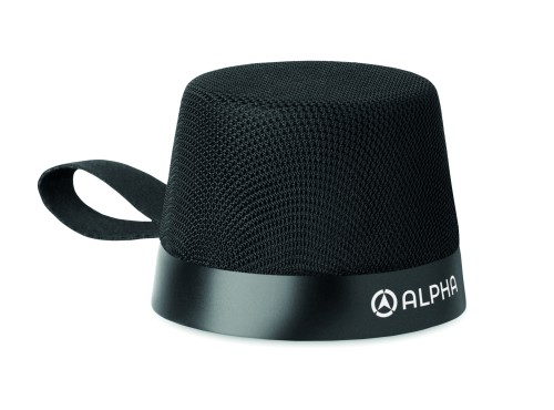4.2 wireless speaker in ABS casing, RPET polyester fabric and loop. Magnet on back part supports stand functionality. Rechargeable Li-ION 300 mAh battery included. Output data: 3W, 4 Ohm and 5V. Playing time approx. 2hours.
