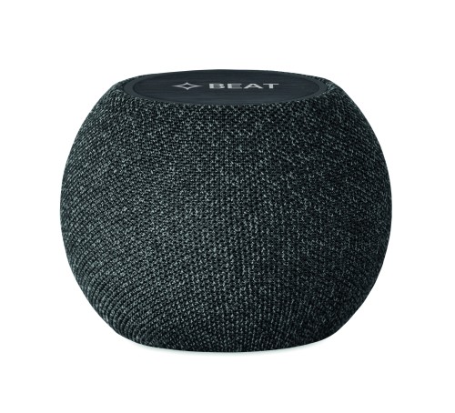 5.0 wireless speaker and 15W wireless charging in ABS and RPET fabric and black coated bamboo detail on top. 1 Rechargeable Li-ION 1200 mAh battery included. Includes an SD card port and an AUX/ USB cable. Output data: 5W, 3 Ohm and 5V. Playing time approx. 5h.