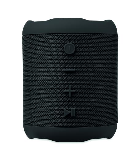 5.0 wireless speaker in ABS with RPET fabric. 1 Rechargeable Li-ION 800 mAh battery included. Includes an SD card port and an AUX/ USB cable. Output data: 5W, 3 Ohm and 5V. Playing time approx. 3h.