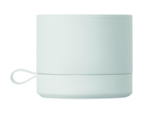 Wireless 5.1 speaker with metal body and rubber finish. Features 3W mono sound. Includes rechargeable and replaceable 500mAh battery. Compact and modern design.