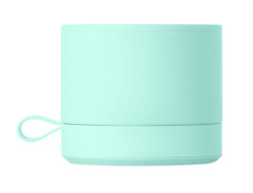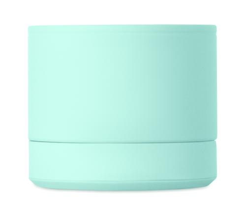 Wireless 5.1 speaker with metal body and rubber finish. Features 3W mono sound. Includes rechargeable and replaceable 500mAh battery. Compact and modern design.