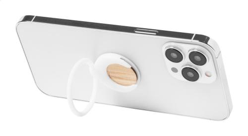 Round ABS plastic mobile holder ring with self-adhesive base and bamboo shopping trolley coin.