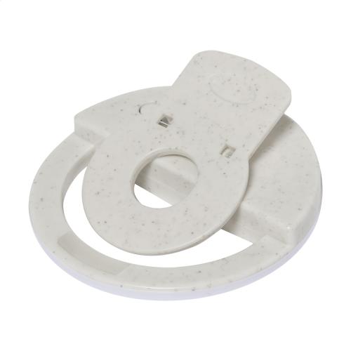 Ecological wheat straw plastic selfie ring light with 36 LED for mobile phones. With 3 adjustable brightness levels and built-in rechargeable battery. Including USB charger cable.