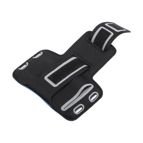 Mobile phone armband case in PU leather with touch screen window and reflective part. Fits mobile phones up to 6 inch screen size.