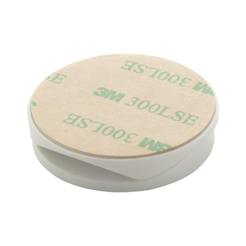 Bamboo covered, round shaped, plastic mobile holder with self-adhesive base.