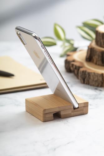 Desk mobile phone and tablet holder in bamboo.