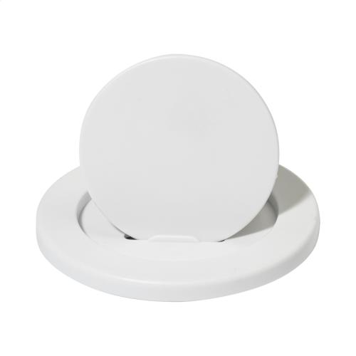 Magnetic mobile holder in recycled ABS. Including self-adhesive metal ring for phones without a magnetic surface.