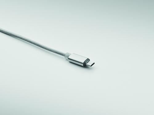 Charging cable in aluminium with input: 2-in-1 type-C & type-A and micro-B (2 in 1 pin), Type C and micro B output. Cable length: 120cm.
