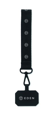 Phone cord holder wrist strap in polyester with safety buckle. 2.5 cm.