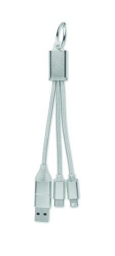 Key ring with charging cable with input: 2-in-1 type-C & type-A and micro-B (2 in 1 pin) and Type C output.