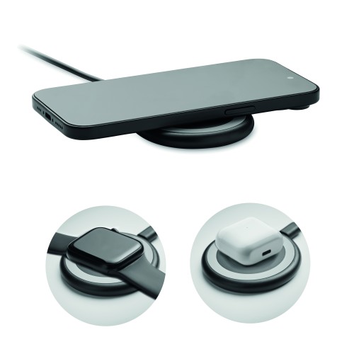 3 in 1 wireless charger 15W . It includes a magnetic wireless charger 15W, smartwatch charger (Samsung® and Apple®) and TWS charger. Cable length: 1M. Input: 2-in-1 Type-C and Type-A.