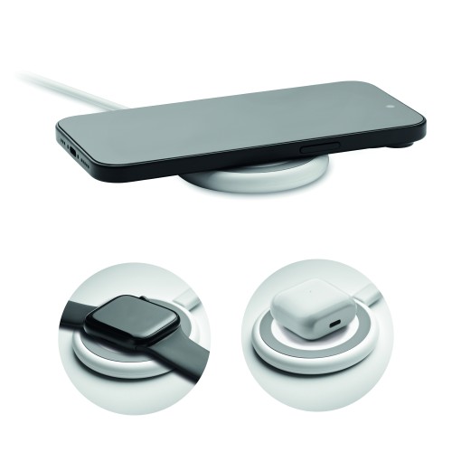 3 in 1 wireless charger 15W . It includes a magnetic wireless charger 15W, smartwatch charger (Samsung® and Apple®) and TWS charger. Cable length: 1M. Input: 2-in-1 Type-C and Type-A.