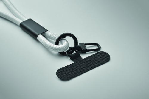 Cord lanyard with 60W charging and data transfer cable type-C to type-C in RPET with phone cord holder and key clip.