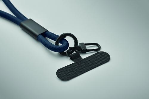 Cord lanyard with 60W charging and data transfer cable type-C to type-C in RPET with phone cord holder and key clip.