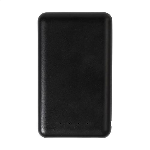 Recycled ABS compact power bank with 4000 mAh battery. With 1 USB and 1 USB-C charger ports. USB-C input port. Including USB charger cable.