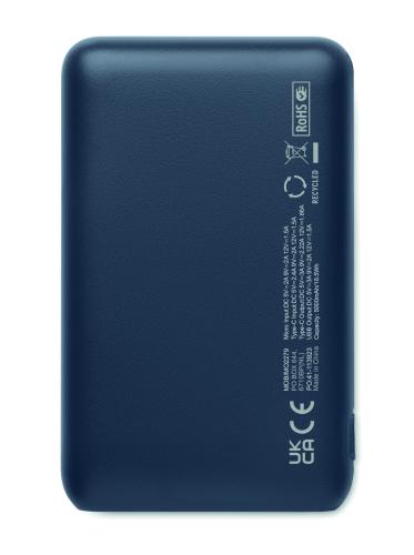 Powerbank PD 20W. 5000 mAh. Recycled ABS (GRS). Outputs: USB-C up to 20W and 2 USB-A up to 18W. Input: USB-C and Micro-B 18W. 4 LED indicators. USB-C to USB-C cable (2A) with USB-A adapter included.