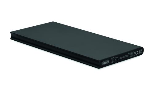 Powerbank. 8000 mAh. Recycled aluminium and RABS (GRS). Outputs: USB-C and USB-A up to 10W. Input: USB-C 10W. USB-C to USB-C cable (2A) with USB-A adapter included.