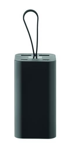 Powerbank PD 65W. 20000 mAh. Recycled aluminium (GRS). Outputs: 2 USB-C input/output up to 65W and 2 USB-A outputs. USB-C to USB-C cable (60W) included.