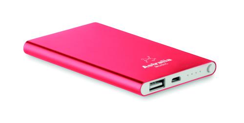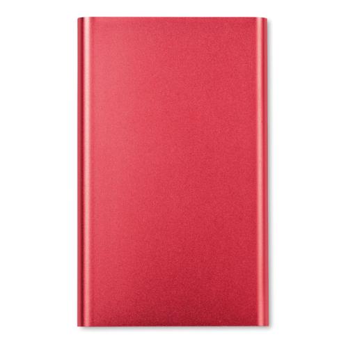 Powerbank. 4000 mAh. Recycled aluminium and ABS. Outputs: USB-A up to 5W. Input: USB-A 5W. 4 LED indicators. Built-in Micro USB plug. USB-A to Micro USB cable (30 cm) included.