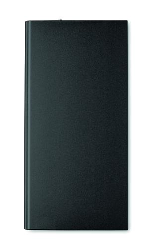 Powerbank. 8000 mAh. Recycled aluminium and ABS. Outputs: USB-A up to 10W. Input: USB-A 5W. 4 LED indicators. Built-in Micro USB plug. USB-A to Micro USB cable (30 cm) included.