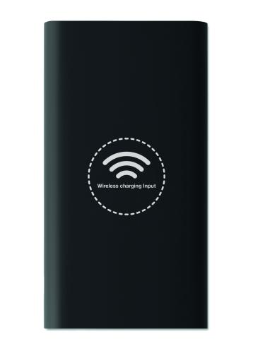 Wireless powerbank. 8000 mAh. ABS with rubber finish. Outputs: USB-C and USB-A up to 20W. Wireless charging up to 15W. Input: USB-C and Micro-B. 6 LED indicators. USB-C to USB-C cable with USB-A adapter included.