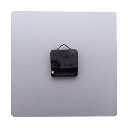 Custom made, brushed aluminium composite wall clock with custom graphic in square shape. Operates with 1 AA battery, without battery. Price includes UV LED printing. MOQ: 25 pcs.