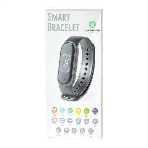 Multilingual, wireless smart watch with 0,96" TFT screen and TPU strap. With heart rate, blood pressure and blood oxygen monitor functions. Including USB charger cable.