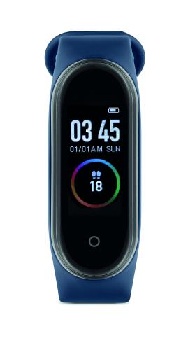 5.0 wireless smart health watch in ABS with silicone strap. 0.96 inch touch LCD display. Rechargeable Li-Pol 90 mAh battery. Requires a free app (HryFine available in both iOS and Android).