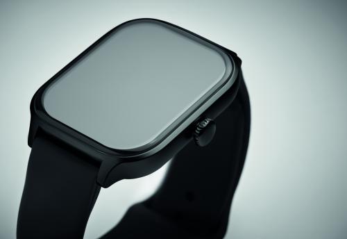 5.4 wireless smart health watch in zinc alloy with silicone strap. 2.01 inch touch LCD display. Rechargeable Li-Pol 180 mAh battery. Requires a free app (HryFine available in both iOS and Android).
