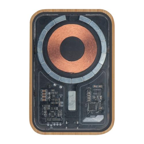 Magsafe® made of bamboo and transparent front with 5,000 mAH power for wireless charging up to 10 watts. Thanks to the integrated magnet, the charger docks onto the Iphone® and ensures fast and wireless charging. Compatible with Iphone® 12 and above, it can be used as a wireless charger for other QI-capable models.