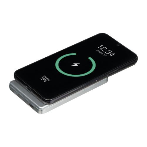 Magsafe® made from recycled aluminium with 5,000 mAH power for wireless charging up to 10 watts. Thanks to the integrated magnet, the charger docks onto the Iphone® and ensures fast and wireless charging. Compatible with Iphone® 12 and above, it can be used as a wireless charger for other QI-capable models.