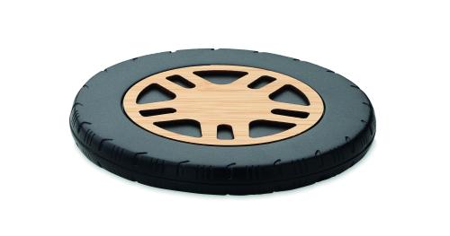 Wireless charger 15W in recycled ABS and bamboo top. Car tire design. Connect device to your computer, place smartphone on it and let it charge. Output: DC 9V/1.10A (15W) for quick charging.
