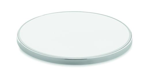 Aluminium Wireless charger 10W with glass on top. Connect device to your computer, lay down smartphone on it and let it charge. Blue light when charging. Output: DC 9V/1.1A.
