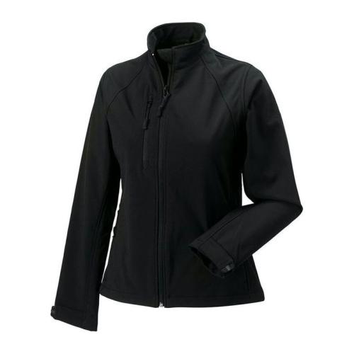 Full zip women's softshell jacket with inner storm flap and zip neck protector at collar, side pockets and chest pocket with inner lining, reversed zips and cord pulls, 5.000mm water column, water-resistant, absolutely windproof and breathable, 40° washable