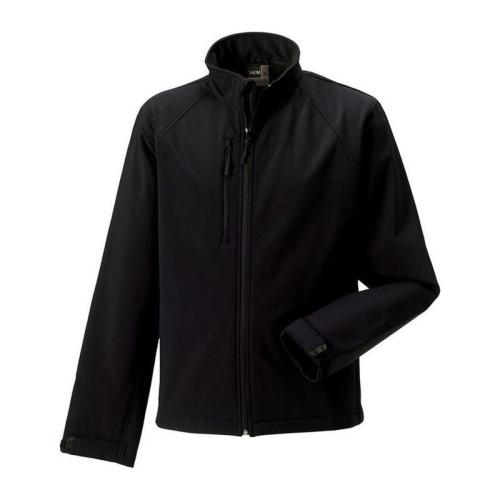 Full zip men's softshell jacket with inner storm flap and zip neck protector at collar, side pockets and chest pocket with inner lining, reversed zips and cord pulls, 5.000mm water column, water-resistant, absolutely windproof and breathable, 40° washable