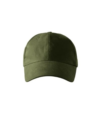 six-panel design, bonded 2 front panels, stitched, slightly curved peak, embroidered air holes, sweatband, size adjustable by brass clip