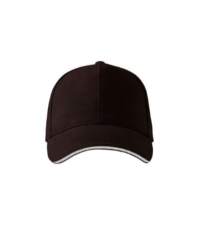 six-panel design, bonded 2 front panels, stitched, slightly curved peak with a contrast stripe, embroidered air holes, sweatband, size adjustable by brass clip