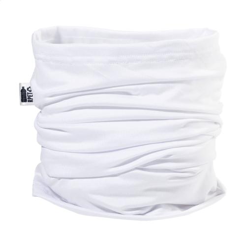 Custom made, RPET multipurpose scarf with all-over sublimation printed graphics. 92% RPET polyester and 8% elastane (185 g/m²), with distinctive RPET label. MOQ: 50 pcs.