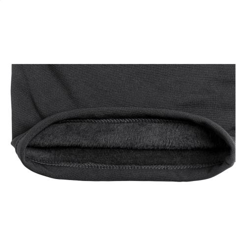 Multipurpose neck warmer and hat. Polyester and spandex (280 g/m²) with coral fleece lining.