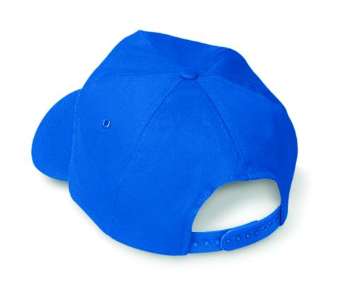 5 panel baseball cap in cotton twill 160 gr/m2 with adjustable plastic snap closure. 2 metal eyelets with matching colour plating. Size 7 1/4.