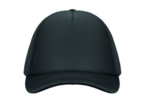 5 panel truckers cap in polyester 140-150 gr/m² with adjustment plastic snap closure. White front panel and colour visor in polyester jersey with foam backing. Other panels in colour mesh. Size 7 1/4.