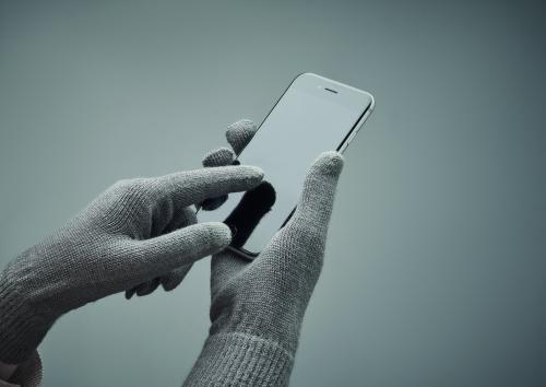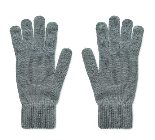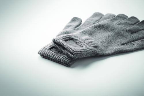 Knitted gloves in soft stretchable RPET polyester with decoration patch.