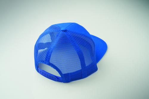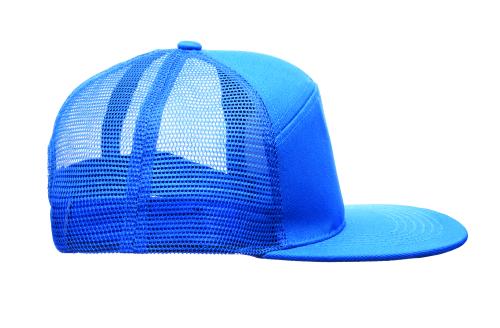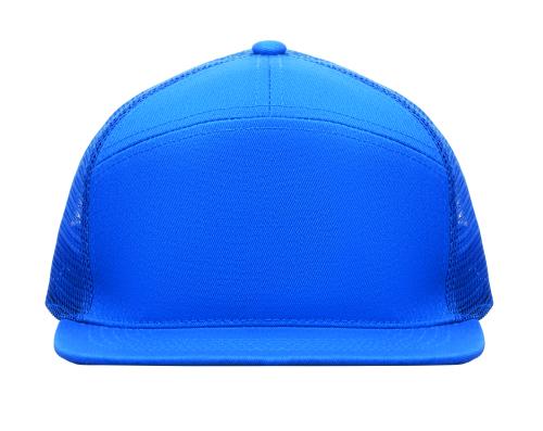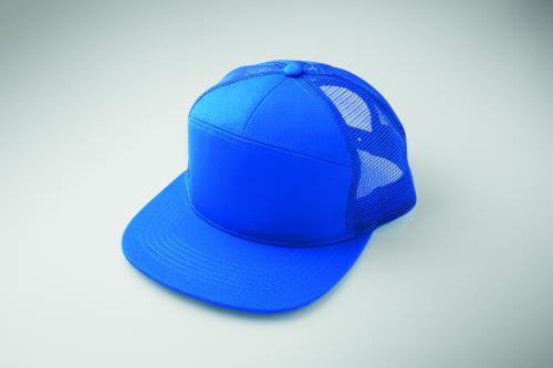 7 panel flat visor cap in cotton twill 235 gr/m² with polyester mesh backside and plastic closure.