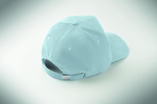 5 panel baseball cap in polyester corduroy with adjustable metal buckle closure. 220 gr/m².