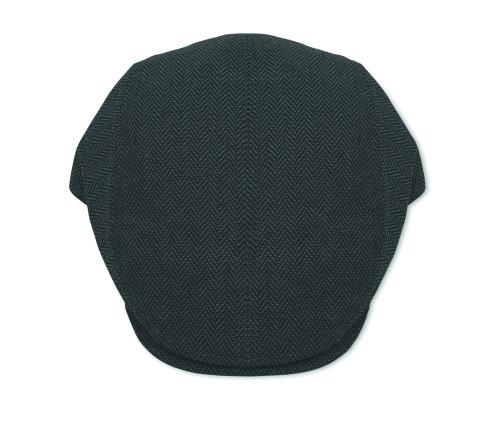 Newsboy flat cap mélange in 335 gr/m² polyester with metal buckle closure.