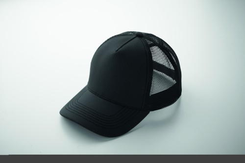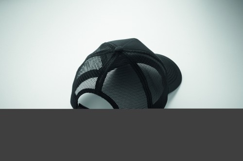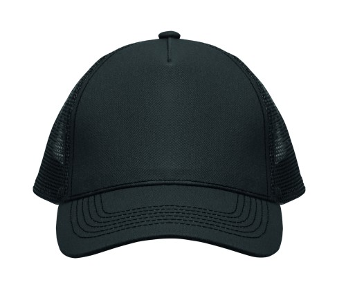 5 panel trucker cap with front panel and visor in 250 gr/m² cotton, back mesh in polyester, hook and loop closure.
