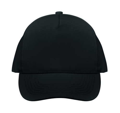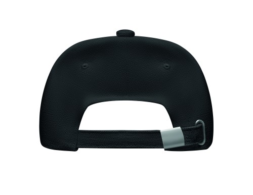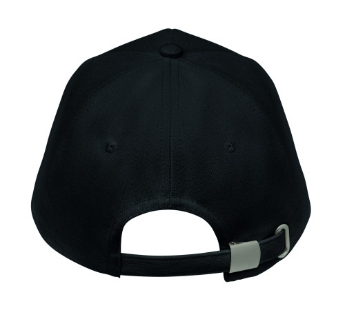 5 panel baseball cap in 250 gr/m² organic brushed cotton with metal adjustable strap back buckle closure.