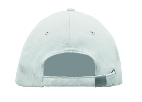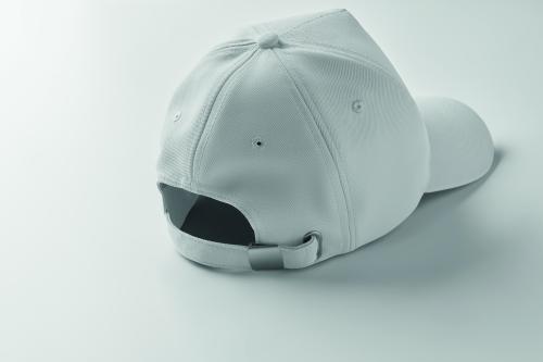 RPET 5 panel baseball cap in polyester 210 gm/m2 with silver steel buckle. 4 embroidered eyelets in matching colour. Size 7 1/4.