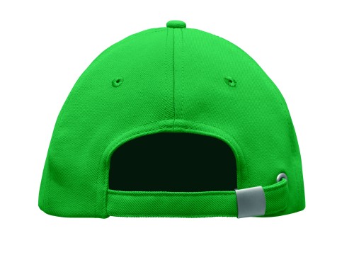 RPET 5 panel baseball cap in polyester 210 gm/m2 with silver steel buckle. 4 embroidered eyelets in matching colour. Size 7 1/4.