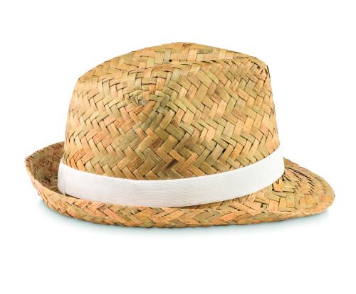 Natural straw hat with polyester band. For unprinted orders band will be supplied unattached to the item.